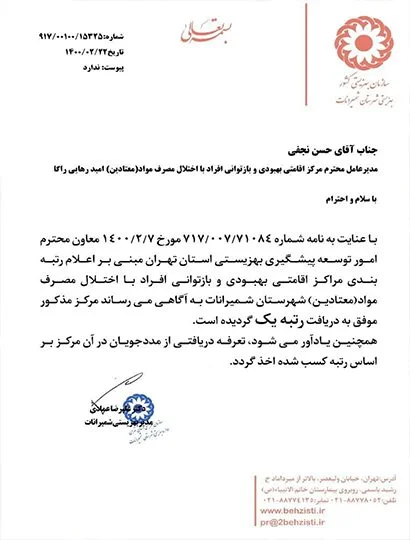 مرکز تخصصی بهبودی اقامتی امید رهایی راگا (نیاوران) با مجوز رسمی از سازمان بهزیستی تهران (شمیرانات) و شماره ثبت ۳۲۸۴۸، سالها تجربه موفق در درمان اعتیاد و سوءمصرف مواد مخدر دارد. این مرکز بهعنوان یکی از معتبرترین کمپهای ترک اعتیاد در استان تهران شناخته شده و خدمات گستردهای به بیماران و خانوادهها ارائه میدهد. کمپ نیاوران با تیم تخصصی متشکل از پزشک، روانپزشک، مشاوران و مددیاران اعتیاد، بهبودی کامل را هدف قرار داده و با برنامههای سمزدایی، مشاوره فردی و گروهی، و درمانهای بلندمدت به افراد کمک میکند تا مسیر بهبودی را با موفقیت طی کنند.